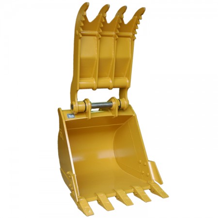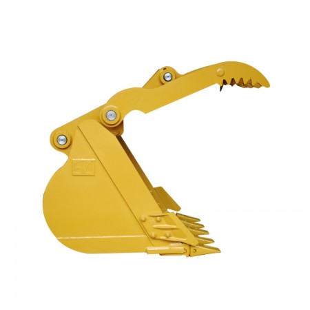 產品特點:有挖斗前面安裝有擋板,可在抓取物料的同時減少翻落。 適用工況:裝載舉升較高的地方。