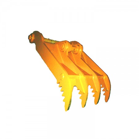 產品特點:有挖斗前面安裝有擋板,可在抓取物料的同時減少翻落。 適用工況:裝載舉升較高的地方。
